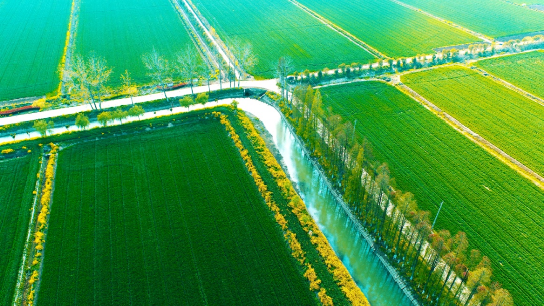 大圹圩农场高标准农田呈现“田成方、路成网、渠相连”的现代农业图景。