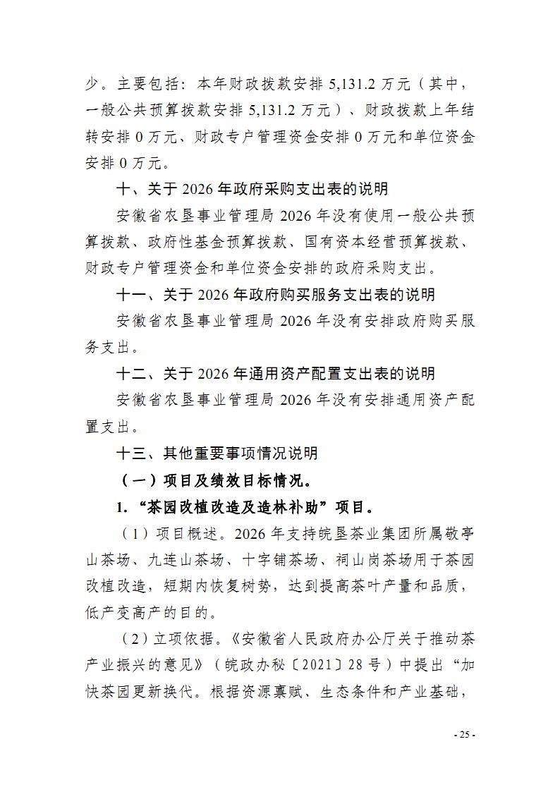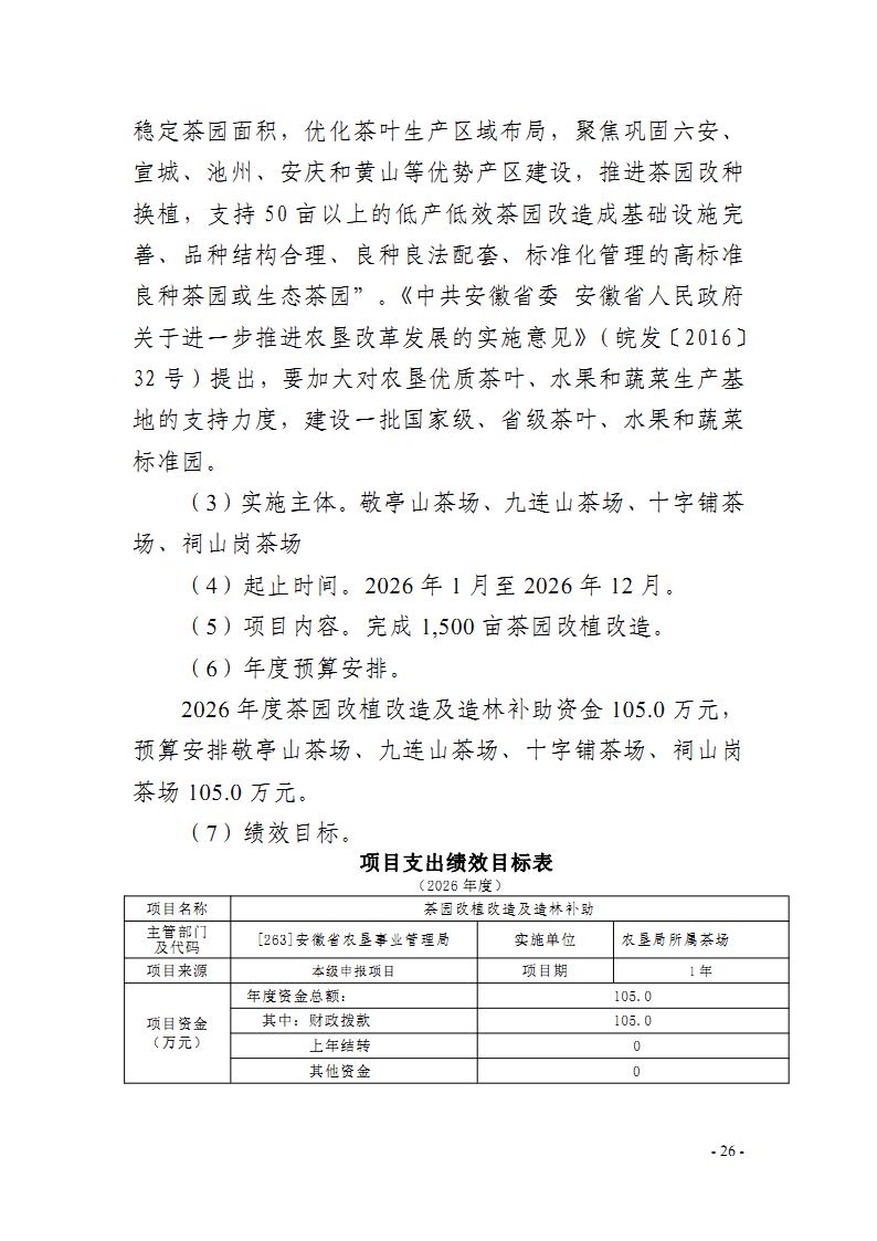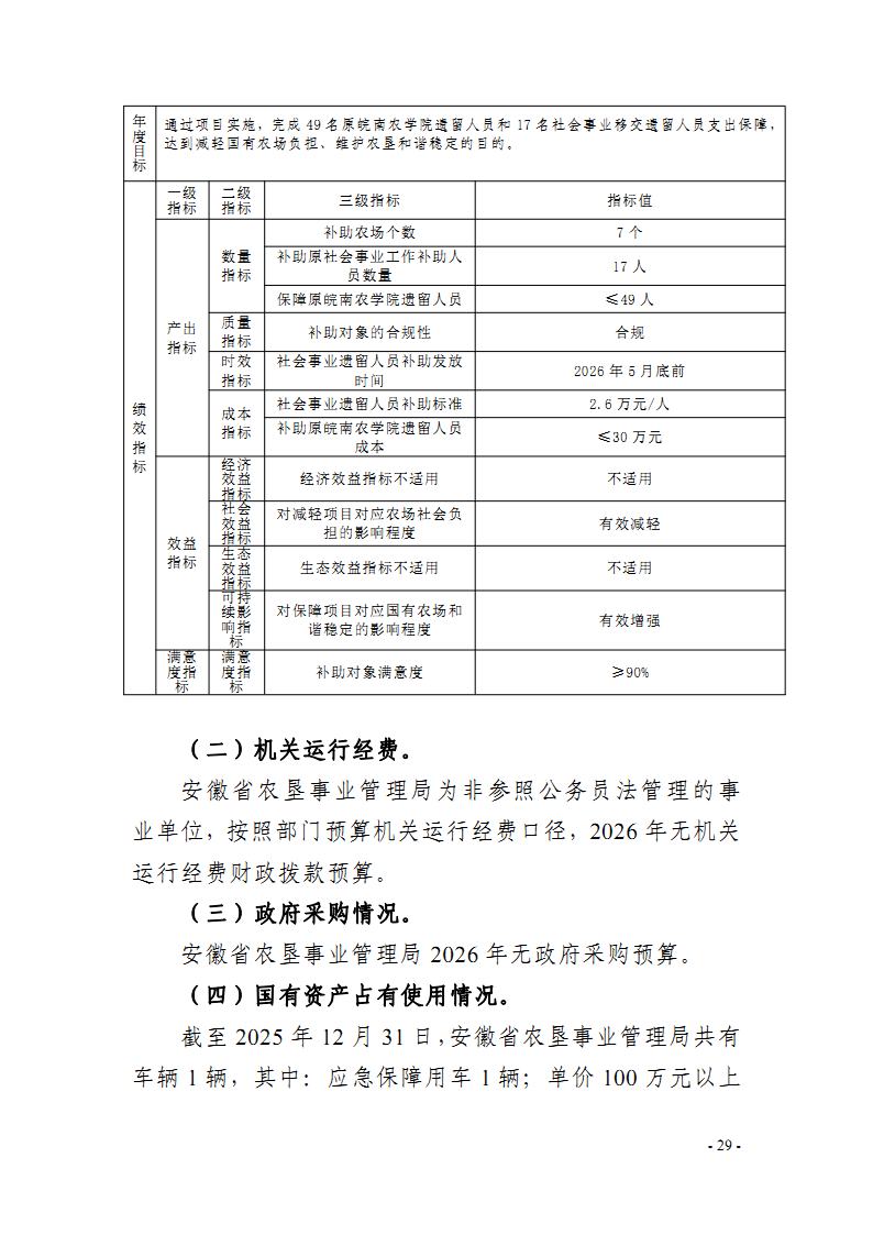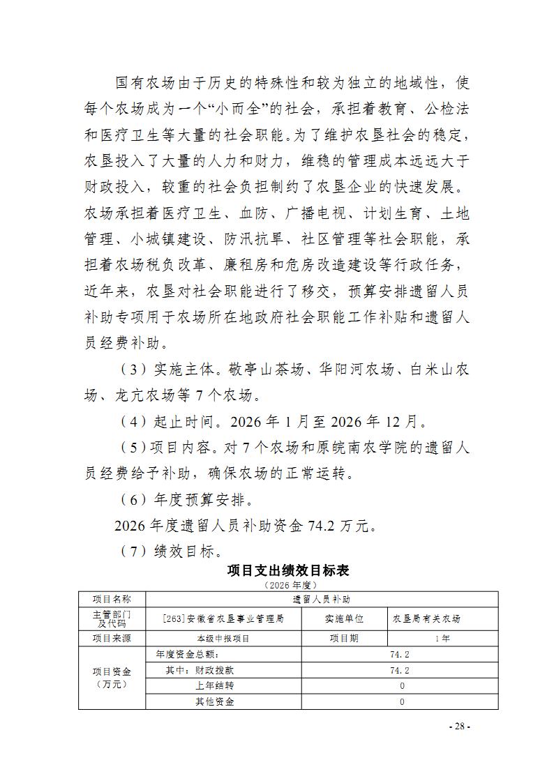 安徽省农垦事业管理局2026年部门预算批复的其他项目绩效目标