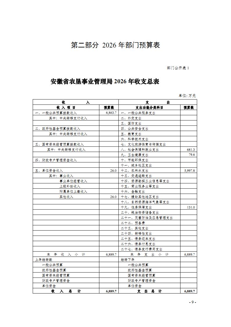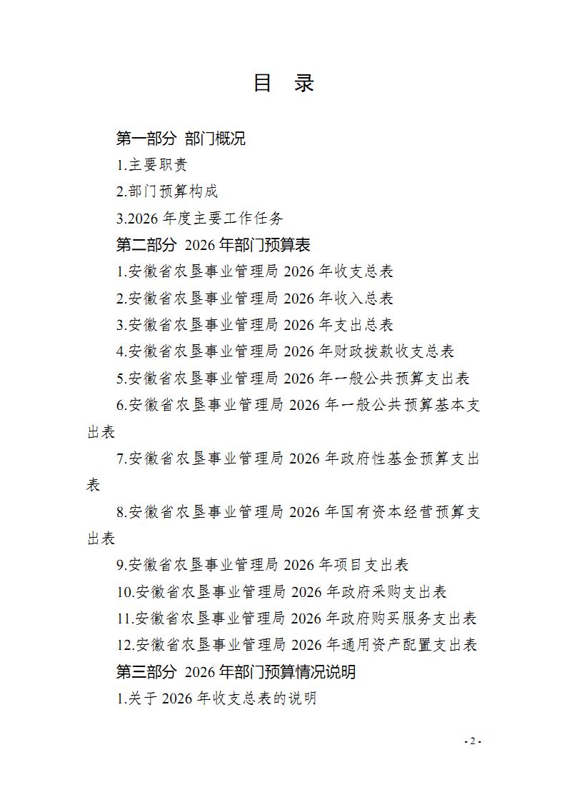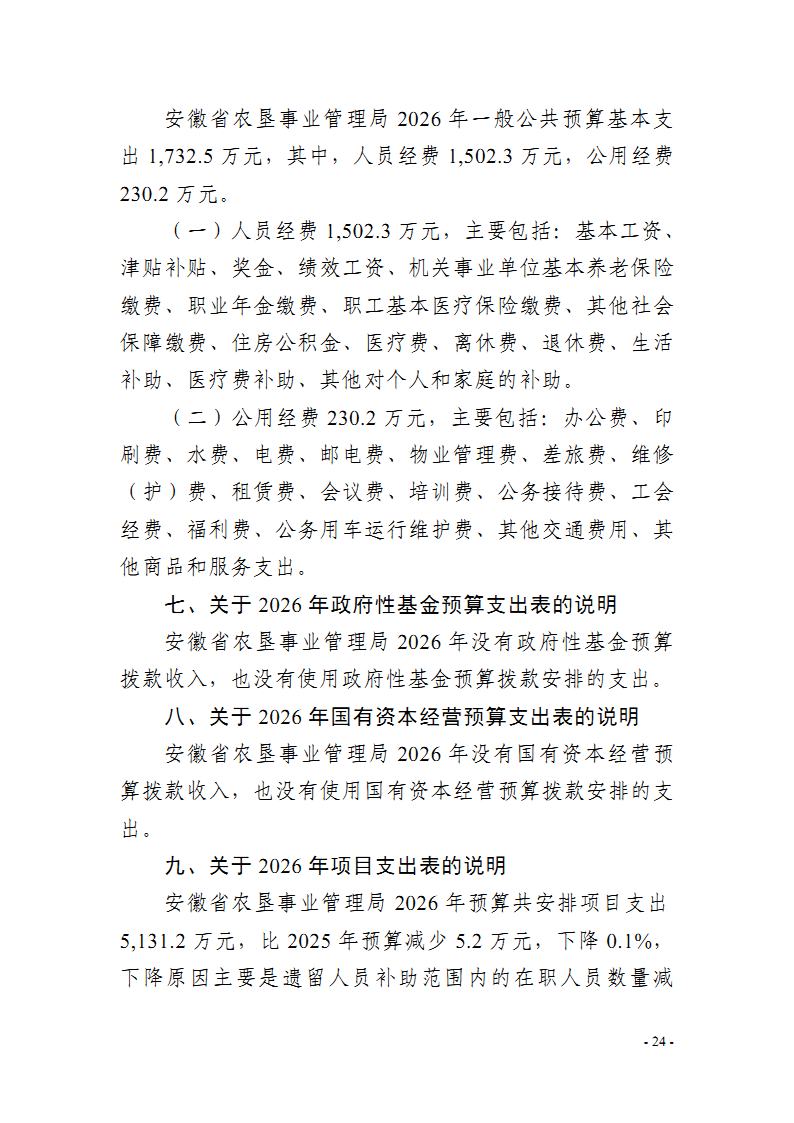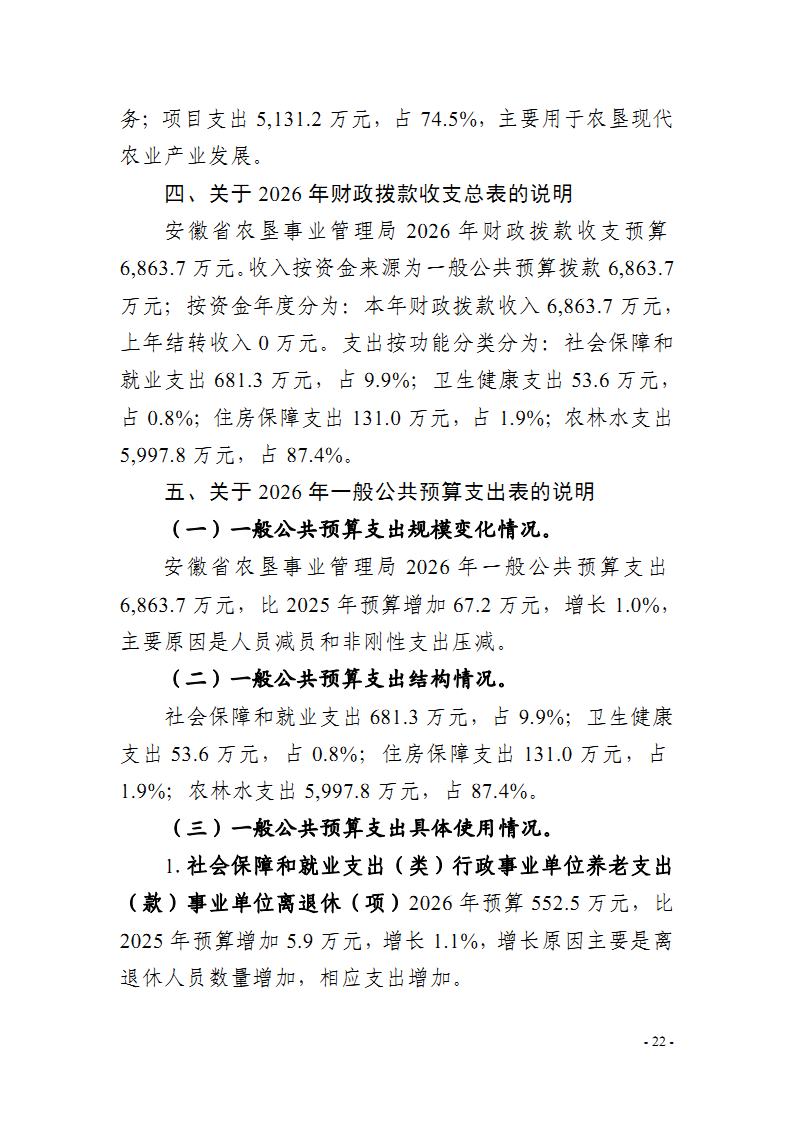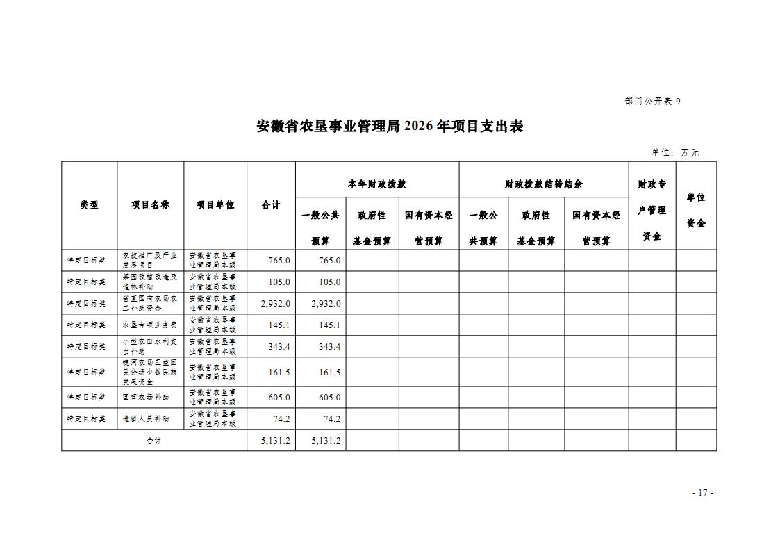 安徽省农垦事业管理局2026年部门预算批复的其他项目绩效目标