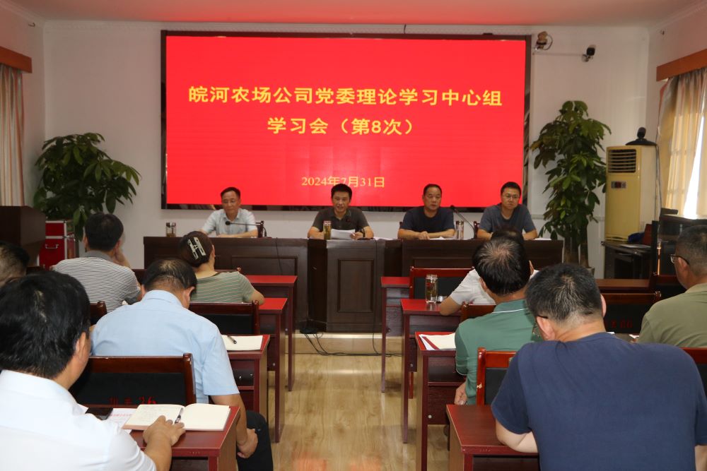 7月31日下午,皖河农场公司党委召开第8次理论学习中心组学习会议,专题学习党的二十届三中全会精神,深入交流学习体会。农场公司党委委员,机关各部门、下属各单位主要负责同志参加会议。