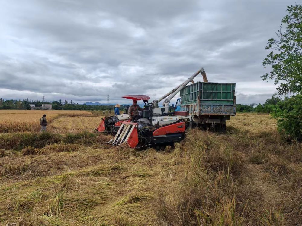 金秋十月,稻田飘香。农垦桐城公司根据水稻成熟情况和烘干能力,有序开展社会化服务地块收割、运输、入库烘干等各项工作。公司合理安排收割进度,严把收割质量关,树立减损即增产的理念,力争粮食颗粒归仓。员工当好秋收生产一线“安全员”、“宣传员”,按下秋收“护航键”,保证秋收工作安全有序开展。