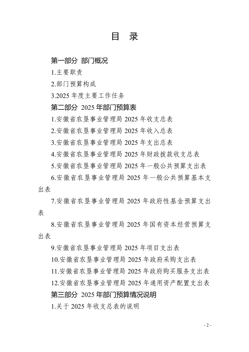 安徽农垦集团:安徽省农垦事业管理局2025年度项目支出绩效目标
